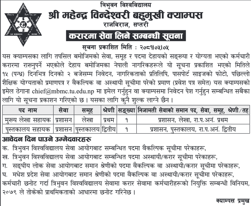 Head Account Assistant and Library Assistant Vacancy